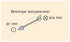 Рис. 5.10. Позначення векторів, перпендикулярних до площини рисунка
