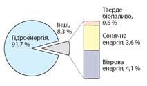 В Україні поки що загальна потужність електростанцій, які використовують ВДЕ (без великих ГЕС), станом на 2016 р. залишалася на рівні 1 млн кВт, або 1,8 % від загальної потужності об’єднаної енергосистеми України (мал. 4).
