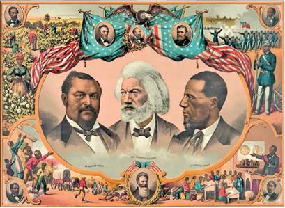 Афроамериканські лідери Реконструкції Півдня: Бланш Брюс, Фредерік Дуглас, Хайрем Родс Ревеле. 1881 р.