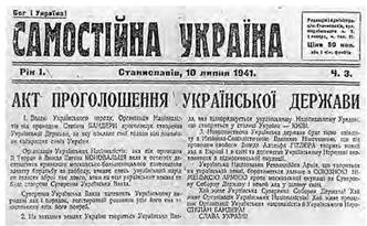 30 червня 1941 р., скориставшись захопленням німецькими військами Львова, члени Організації українських націоналістів (ОУН) на чолі зі С. Бандерою проголосили Акт відновлення Української держави. Проте нацистській Німеччині не потрібна була незалежна Україна. Українські діячі зазнали переслідувань: їх заарештовували, кидали до в’язниць і таборів, убивали. Ці події остаточно переконали українців, що вибороти незалежність можна лише власними силами.