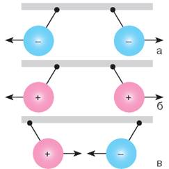 Так, взаємодія електрично заряджених кульок здійснюється за допомогою електричного поля. Коли одна заряджена кулька потрапляє в електричне поле другої, у результаті чого кульки відхиляються від положення рівноваги (рис. 20.1).