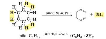 Бензен утворюється під час дегідрування циклогексану: