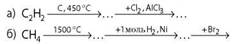 в) CH4 → C2H2 → C6H6 → C6H5Cl.
