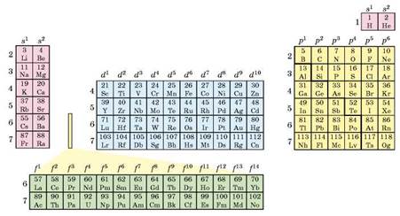 Мал. 4.1. Електронна конфігурація підрівня, що заповнюється останнім в атомів елементів різних підгруп Періодичної системи (довгий варіант)