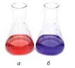 Мал. 114. Забарвлення лакмусу: а — за наявності кислот; б — основ