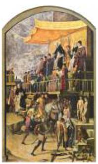 «Святий Домінік головує над Auto-da-fe» (оголошення вироку інквізиції), художник Педро Берругете, кінець XV ст.