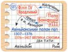 6. Вправа «Стрічка часу». Зобразіть стрічку часу. Нанесіть на неї дати основних подій з історії середньовічної церкви. Складіть історичну задачу, скориставшись стрічкою часу.