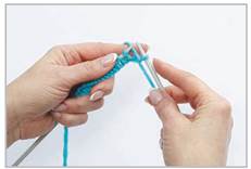 Мал. 4.4. Положення робочої нитки під час в'язання лицьової петлі