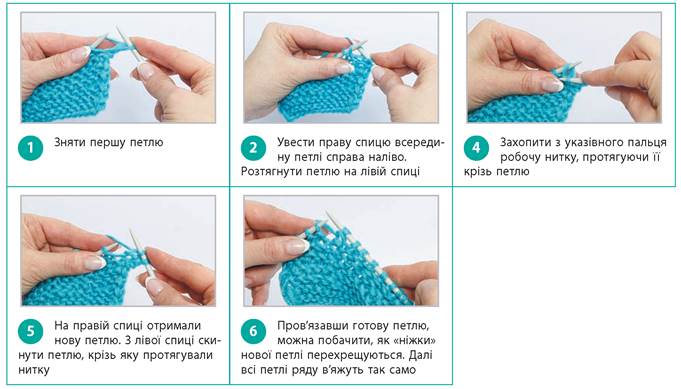 Таблиця 5. В'язання виворітної петлі за передню стінку (класичний спосіб)