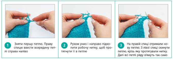 Таблиця 3. В'язання лицьової петлі за передню стінку (класичний спосіб)