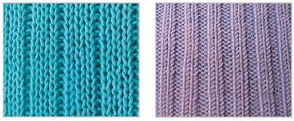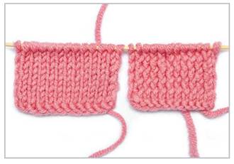 Мал. 4.5. В'язання лицьової гладі двома способами: за передню стінку (праворуч) і за задню (ліворуч)