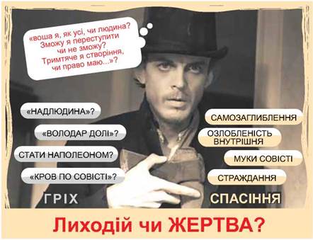 7. У класі проведіть дискусію за романом «Злочин і кара» на тему «Так ким же є Раскольников: страждальцем за людство чи недолугим Наполеоном?».