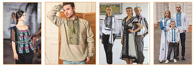 Розглянь зразки сучасних стилізованих вишиванок (с. 49). Зверни увагу на особливості крою, кольори тканин та візерунків, розміщення орнаментів.