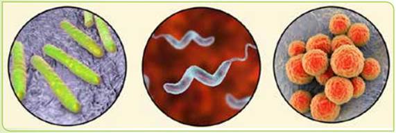 Хвороби, спричинені бактеріями, називають бактеріальними (наприклад, ангіна, холера, дизентерія), а спричинені вірусами — вірусними (наприклад, грип, вітряна віспа).