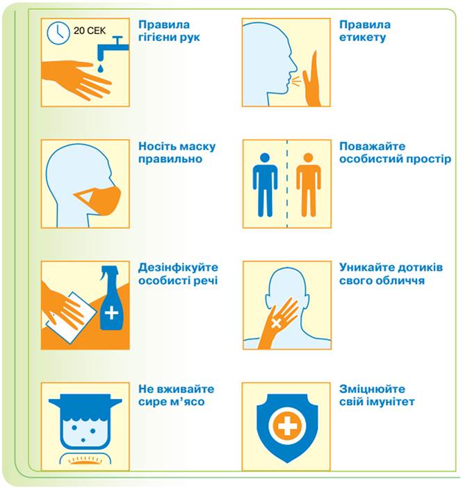 Дізнайся про означення понять «дезінфекція», «імунітет» та інших нових для тебе слів, які зустрічаються в інфографіці.