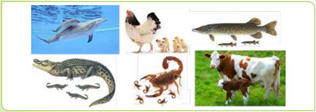У тварин поширене статеве розмноження, яке відбувається за участю самця і самки. Так у тварин вирізняють особини чоловічої й жіночої статі (наприклад, лев і левиця, качур і качка). При статевому розмноженні новий організм вилуплюється з яйця або його народжує самка. З яєць з’являються птахи, крокодили, черепахи, багато комах, більшість риб (яйця риб називають ікрою). У багатьох тварин самка, яка народжує дитинчат, вигодовує їх молоком. Таких тварин вчені об’єднали в групу під назвою ссавці (дитинча ссе/смокче молоко). Приклади ссавців: коти, олені, ведмеді, слони, дельфіни, корови.