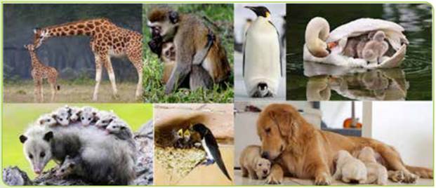 Мал. 78. Прояви турботи про потомство у тварин