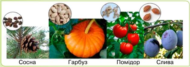 Мал. 82. Рослини та їх насінини