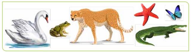 5. Склади характеристику розмноження зображених організмів. Зазнач спосіб розмноження (статеве/нестатеве, потомство з’являється з яйця/ народжується самкою, з перетворенням/без перетворення), наявність турботи про потомство. На основі складених характеристик об’єднай тварин у групи.