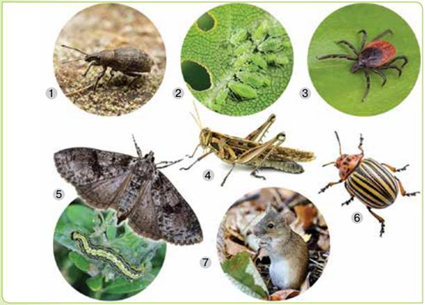 4. Розгляньте колекції та малюнки тварин, які є шкідниками полів. Для кількох видів поцікавтесь, яку шкоду та яким культурним рослинам поля вони наносять.