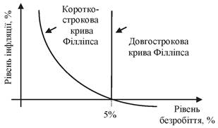 Рис. 4.17. Крива Філліпса в коротко- і довгостроковому періодах