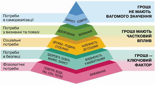 Рис. 40. Роль грошей у мотиваційній піраміді Абрагама Маслоу