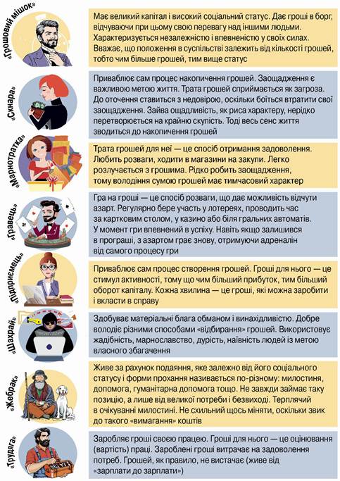 • Визнач, до якого «грошового» типу людини Ти можеш себе віднести.