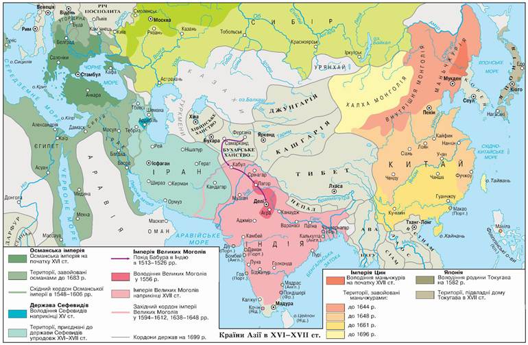2. Схарактеризуйте політичну карту Азії в XVI-XVII ст.