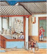 Магазин порцеляни в Кантоні, Китай. Акварель на шовку. XVIII ст.