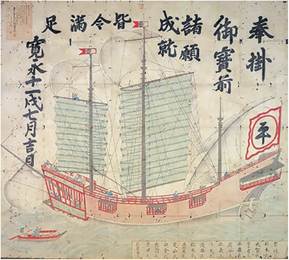 Японський торговельний корабель. Гравюра 1634 р.