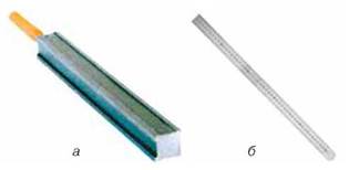Мал. 131. Інструмент для контролю форми обпиляної поверхні: а — лекальна лінійка; б — слюсарна лінійка