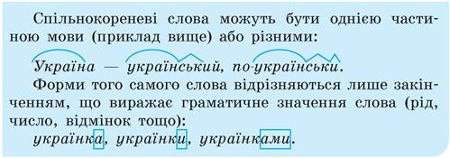 § 4. Будова слова. Корінь слова. Спільнокореневі слова й форми слова