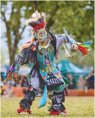 Юний учасник святкового заходу в резервації індіанців Kahnawake виконує ритуальний танець, Квебек, Канада