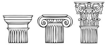 Капітелі колон доричного, іонічного та коринфського ордерів