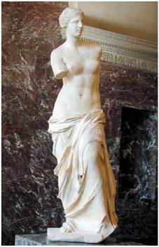 Розгляньте скульптуру Венери. Вона динамічна чи статична? Зверніть увагу на позу, пропорції фігури, виразність складок одягу.