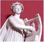 Напевно, вам вже відомо, що в повсякденному житті греки намагалися наслідувати своїх богів і героїв. Образ довершеної людини став основою античного мистецтва, тісно пов'язаного з міфологією. Прекрасного Аполлона, бога натхнення і покровителя мистецтв, супроводжували дев'ять муз, які опікувалися науками й мистецтвами. Музу історії Кліо зображували із сувоєм пергаменту в руці, музу астрономії Уранію — з циркулем. Калліопа, Полігімнія і Ерато надихали на створення епічної поезії, гімнів. Остання ніколи не розлучалася із солодкоголосою лірою. Театром опікувалися Мельпомена і Талія — покровительки трагедії і комедії, яких зображували з трагічною і комічною масками відповідно. Музу танців Терпсіхору і покровительку музики Евтерпу легко впізнати за інструментами-атрибутами — арфою і флейтою.