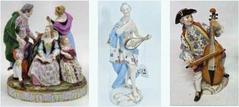 Улюблені теми композицій статуеток: сцени із життя пастухів на тлі чудової природи; театральні комедійні персонажі; фігурки птахів і тварин. Загалом для виробів характерні вишуканість, пишність декору, увага до дрібних елементів, асиметричність, пастельні відтінки. Серед вишуканих декоративних тарілок, уквітчаних вазочок, тендітних фігурок тварин, ніжних пасторальних сцен із пастушками й кавалерами можна побачити цілі музичні ансамблі з флейтами, скрипками тощо.Сьогодні «біле золото» майсенської порцеляни цінується настільки, що організовують індивідуальні антикварні тури з відвідуванням майстерень і бутиків. Порцеляновий рай для колекціонерів може відвідати кожен (але... майже за тисячу евро).