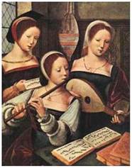 - 3. Які музичні інструменти набули поширення у країнах Північного Відродження? Продемонструй приклади їх зображення в живописі.