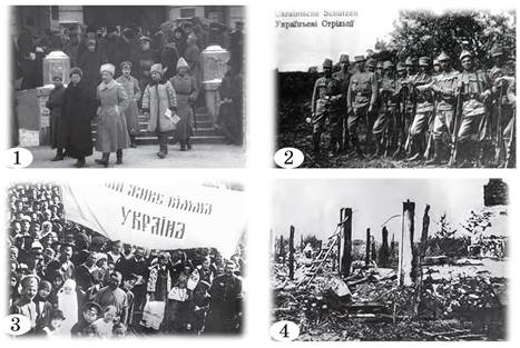 2. >Робота в групі. Розгляньте світлини (1-4). Які історичні події вони ілюструють? Розмістіть світлини в хронологічній послідовності.>