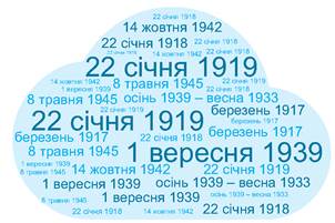 4. >Розгляньте «хмару» слів. На які події історії вказують зображені дати? Позначте їх на шкалі часу.>