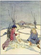 Безсумнівно, був лютий холод. Маленькі Білки, які жили у високій ялині, все терли одна одній носики, щоб зігрітися, а Зайці скрутилися клубком у своїх норах і не наважувалися навіть визирнути за двері. Єдині істоти, які, здавалося, насолоджувалися цим, були великі рогаті Сови. Їхнє пір’я вкрилося інеєм, але їм було байдуже, і вони крутили великими жовтими очима й перегукувались через ліс: