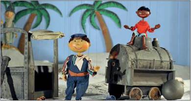 Кадр із мультсеріалу «Джим Ґудзик і машиніст Лукас». Ауґсбурзький ляльковий театр (режисер Манфред Єннінґ, Німеччина, 1976-1977)