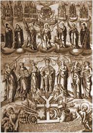 Гравюра І. Мигури. Гетьман Мазепа в оточенні добрих справ