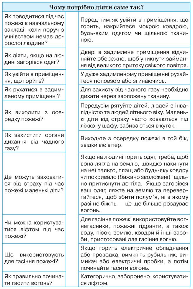 - способи уникнення або зменшення небезпеки від пожеж для життя та здоров’я людей.