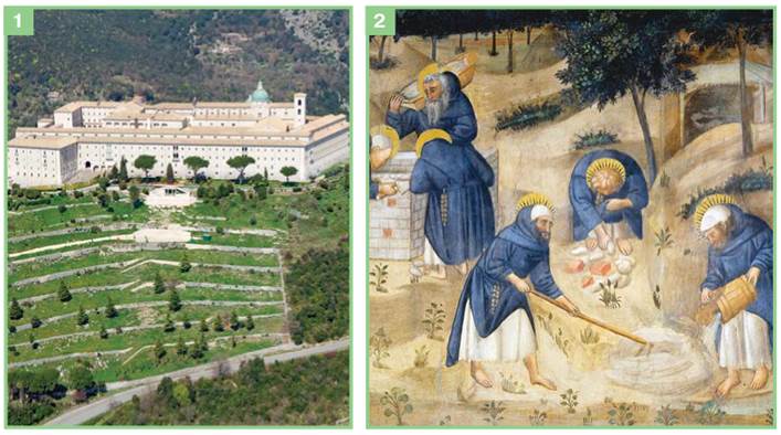 1. Монастир Монтекасіно, заснований у VI ст. Сучасний вигляд. Італія