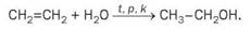 Сучасний метод добування етанолу ґрунтується на взаємодії етилену з водяною парою за температури 300 °С, підвищеного тиску і наявності каталізатора (ортофосфатної кислоти):