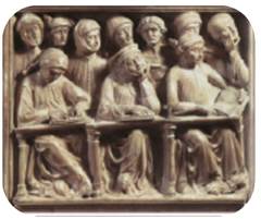 Фрагмент середньовічного барельєфа «Студенти на лекції»