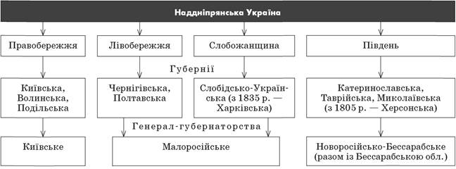 Адміністративно-територіальний устрій та регіональний поділ Наддніпрянської України