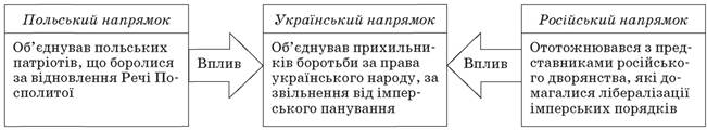 Основні напрямки визвольного руху в суспільно-політичному житті Наддніпрянщини у першій половині XIX ст.