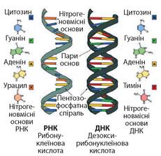 Іл. 57. Особливості будови і структури РНК і ДНК